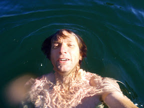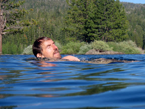 This time Stefan and I went swimming at the private beach of the Kit Carson Lodge, the signs all pointed out that it is for registered guests only, but what the hell, nobody was there but a women painting the rail with a fresh green color.